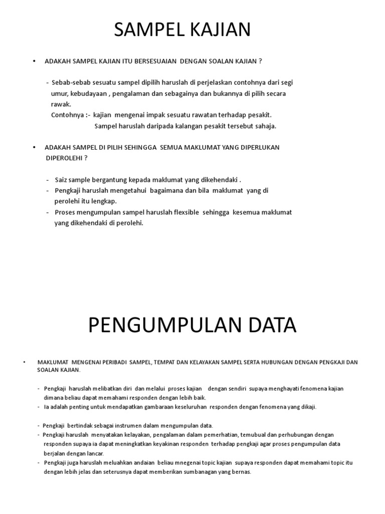 Sampel pertama ini adalah seramai 30 orang pelajar yang berbangsa Indonesia kesemuanya adalah pelajar dalam tingkatan Program Persiapan Bahasa I. METODOLOGI KAJIAN 50 PENDAHULUAN Bab ini membincangkan rekabentuk kajian sampel kajian instrumen kajian dan tatacara pembinaan instrumen serta kajian rintis. Sampel bahan spesimen atau sejumlahsebilangan kecil sesuatu.